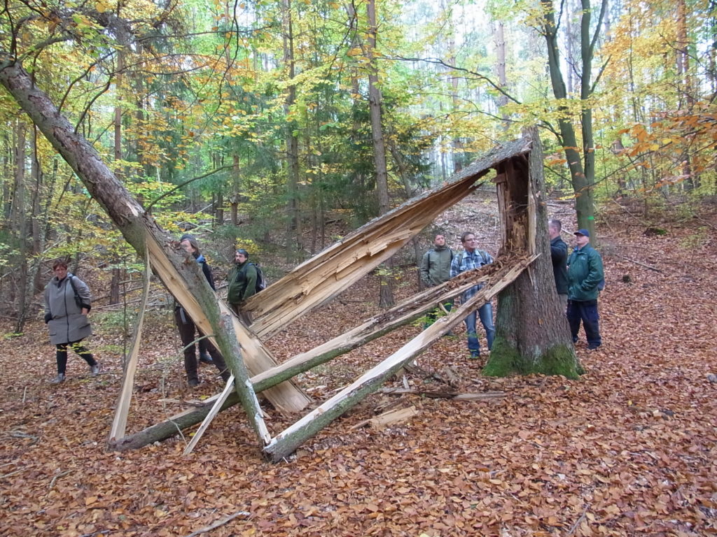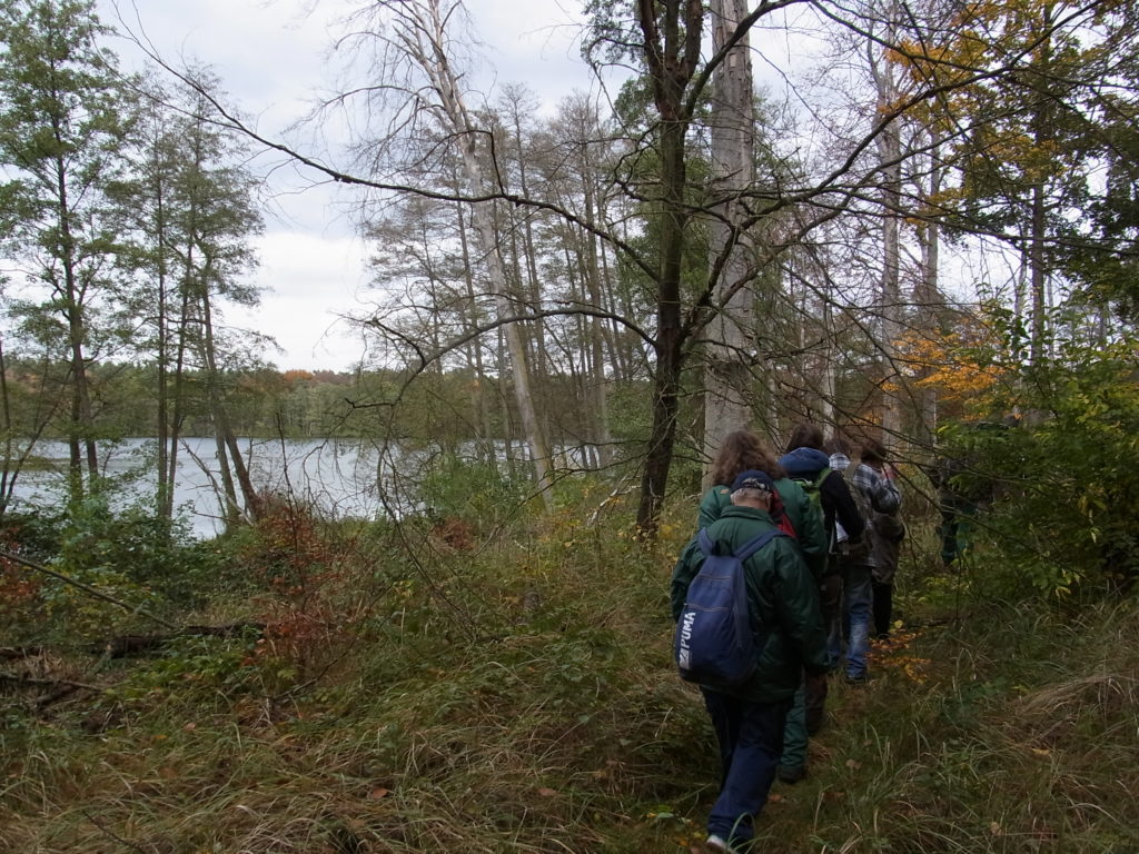 Die Umweltbildungsveranstaltungen für die diesjährige Gruppe der Erwachsenen begann mit einem Besuch bei Herrn Thomas Winterfeldt, Förster und Revierleiter im Revier Melchow. Dort hat sich die Gruppe über Themen wie invasive Arten, Anbaumethoden, Holznutzung, Zertifizierungen und Naturschutz informiert. Dabei wurde auch auf die Zusammenhänge und Widersprüche zwischen den einzelnen Themenkomplexen eingegangen.