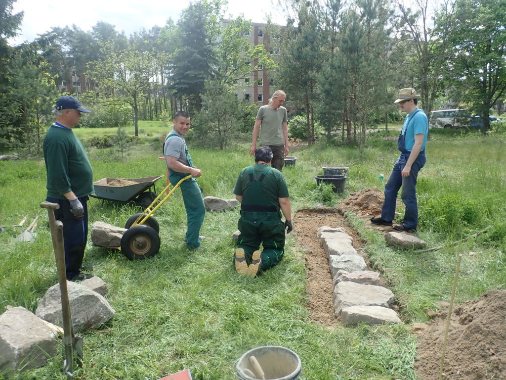 Fertig ist die Mauer. Bepflanzt wurde sie mit Tauben-Skabiose, Feld-Thymian, Wiesensalbei und Kleinem Wiesenknopf.