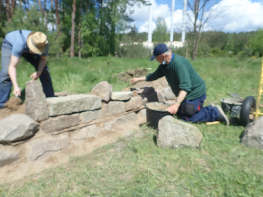 Nach dem Fundament kommt die erste Schicht Steine
