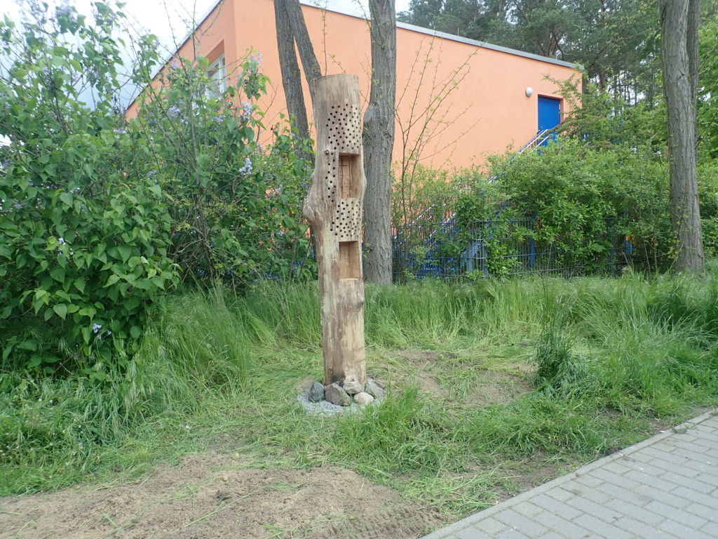 Alle Umweltbildungsveranstaltungen sind abgesagt, aber deshalb sollen die Kinder sich nicht weiter mit den Thema biologische Vielfalt beschäftigen können. Um die Kita Arche Noah dabei zu unterstützen, haben wir uns entschieden, eine neue Bienennisthilfe nach unserem eigenen Design am Kitagelände aufzustellen. Anschließend werden die Erzieherinnen die Fläche mithilfe unserer Anleitung zusammen mit den Kindern bepflanzen und die Zusammenhänge thematisieren.