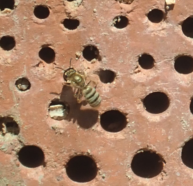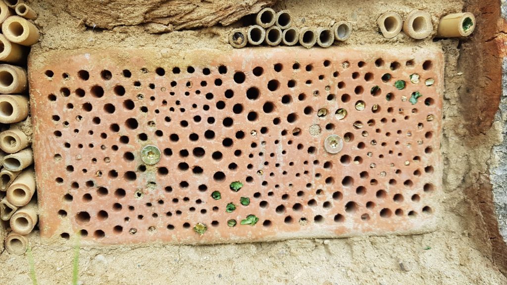 Am Bienenstein erkennt man gut die unterschiedlichen Nistgangverschlüsse der verschiedenen Bienenarten.