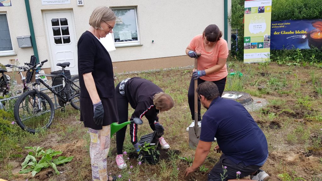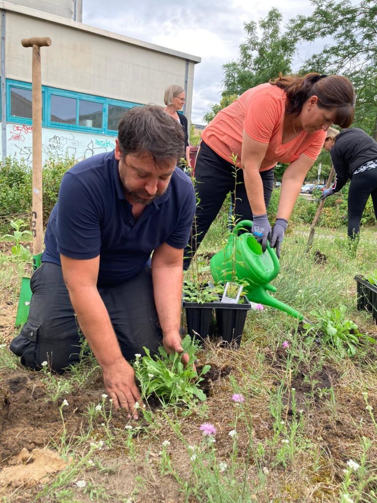 Naja, es blüht zwar schon etwas, aber so richtig bunt wird es dann im kommenden Sommer. Denn die Magerwiese vor dem Dietrich-Bonhoeffer-Haus durfte sich bereits eigenständig entwickeln, aber nun haben wir noch nachgeholfen. Zusammen mit interessierten Anwohnenden haben wir einige heimische Krautpflanzen (Liste siehe unten) näher unter die Lupe genommen und dann auf der Fläche gepflanzt. Wir haben die Vielfalt also deutlich erhöht und freuen uns darauf, die weitere Entwicklung der Fläche in den kommenden Jahren zu beobachten.