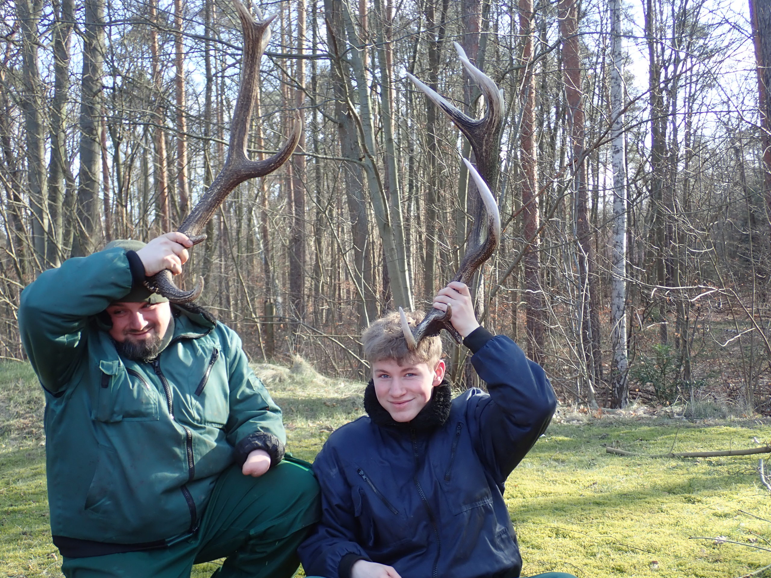 Auch die Projektfläche der Erwachsenen erwacht langsam aus dem Winterschlaf und so war es an der Zeit, hier wieder aktiv zu werden. Zunächst beschäftigte sich die Gruppe aber noch mit den Hirschen, denn einer der Teilnehmer, Jens, hatte abgeworfene Hirschgeweihe, so genannte Abwurfstangen, die er auf Ausflügen in die Natur gefunden hatte, mitgebracht.