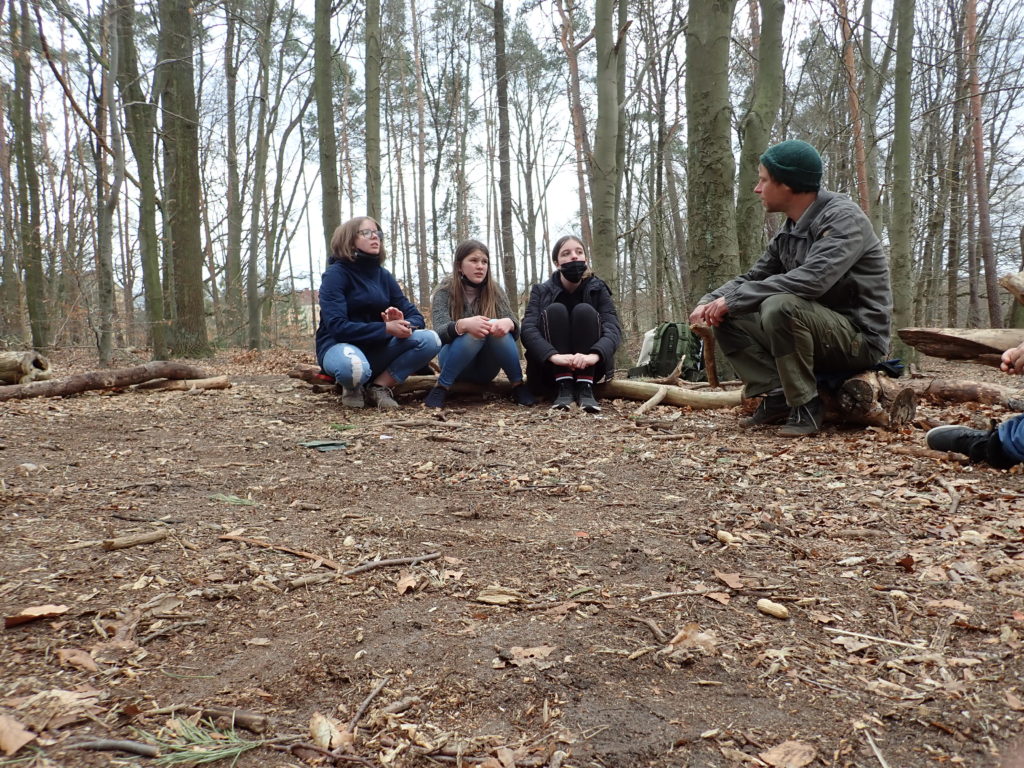 Beim heutigen Waldausflug ging das Spiel „Vogelhochzeit“ in die zweite Runde. Doch zunächst erwartete die Kinder eine kleine Enttäuschung: Die Baumaterialien von ein paar der Nester waren von anderen Kindern zu Buden verbaut worden. Nach anfänglichem Ärger über die Zerstörung, bauten alle ihre Nester wieder auf oder besserten sie aus. Dann ging der „Überlebenskampf“ der Vogelpaar weiter. Sie sammelten Futter und verteidigten gegen Angreifer und Futterdiebe. Marcel besuchte abwechselnd die Nester und fragte das Vogelwissen der einzelnen Gruppen ab.