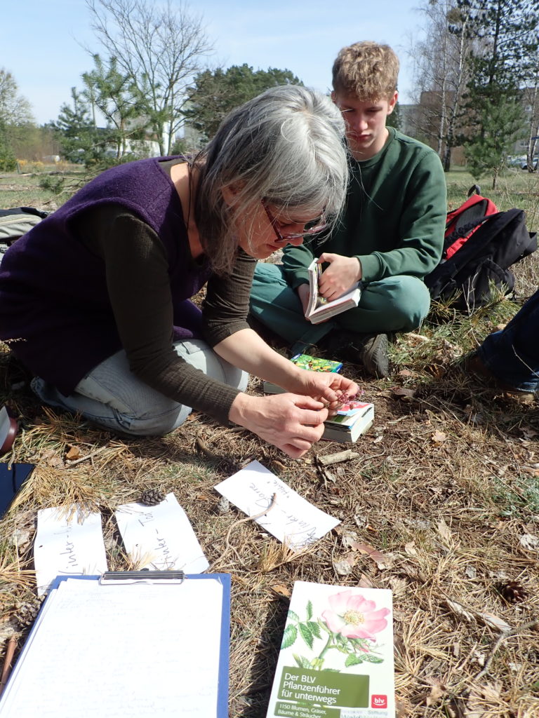 Heute ging es vom Forstbotanischen Garten zur Fuß zur Projektfläche im Brandenburgischen Viertel. Der Weg führte durch den Wald und an einer großen Auswahl an Frühblühern vorbei.