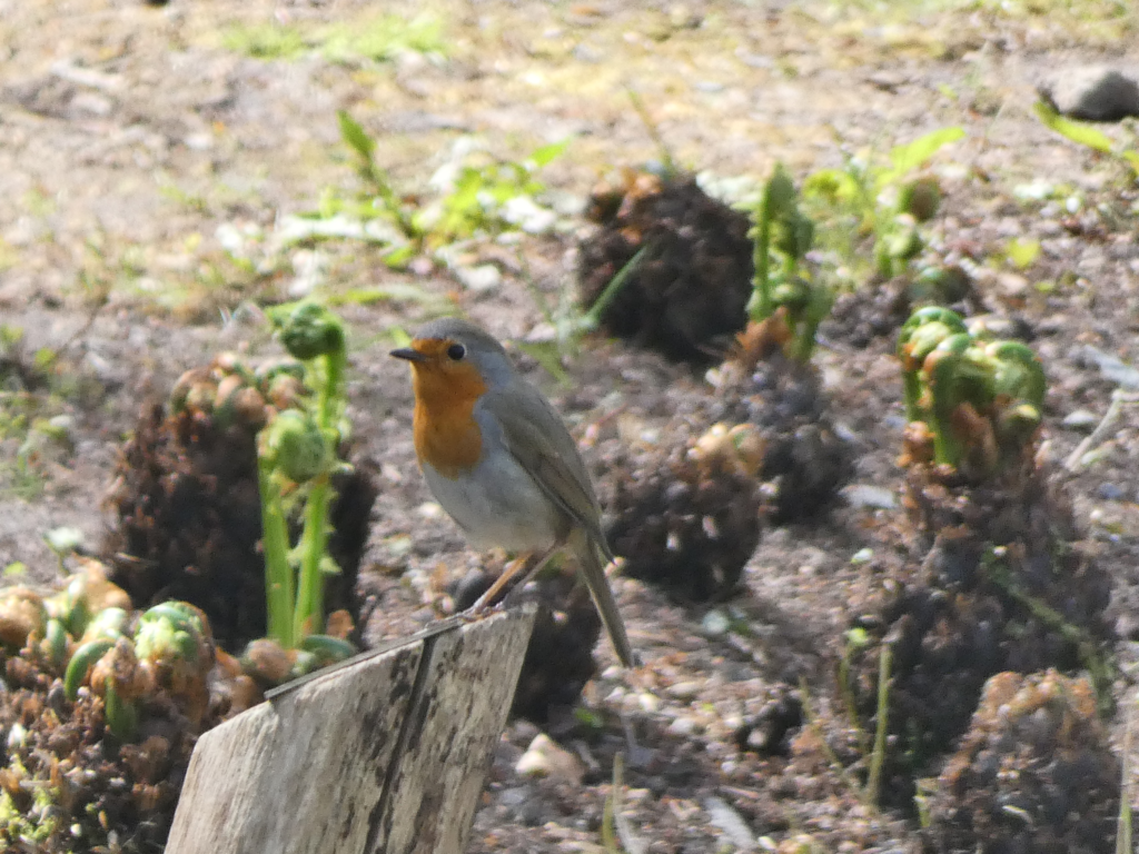 Anschließend geben sich alle zusammen auf eine Führung durch den Garten, angeleitet von Vogelexperte Joscha Kuhlmann. Dabei beobachten sie Amseln, Kohlmeisen und Rotkehlchen.