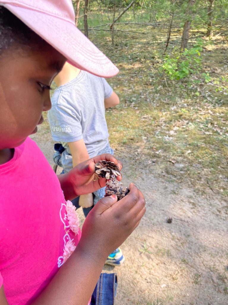 Auch heute ging die Waldgruppe der Kita Kinderland wieder zu ihrem Waldplatz. Auf dem Weg dorthin entdeckten die Kinder wieder viele Pflanzen und Tiere.