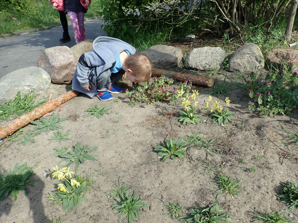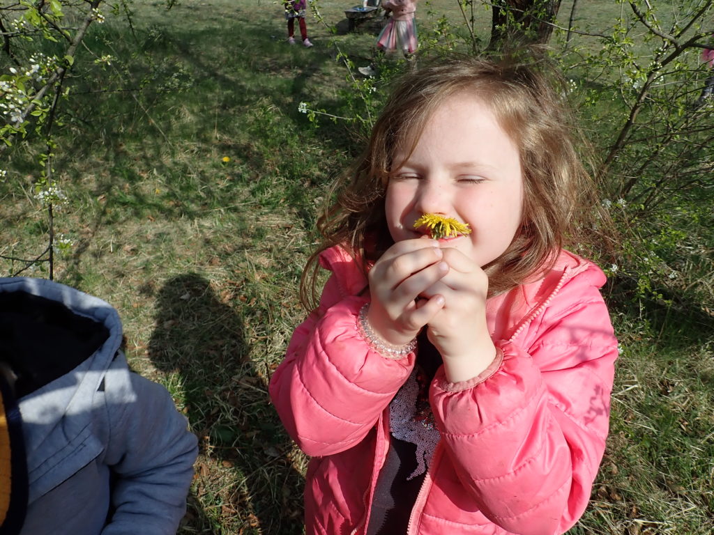 Zurück zu unserer Waldgruppe: Nachdem die Puzzle erfolgreich zusammengelegt wurden, entdeckten die Kinder noch die Blüten auf der Wiese vor der Kita. Sie erkundeten, wo die Bienen Nahrung finden. Glücklicherweise haben die Bienen hier, auch Dank der Pflanzaktionen mit den Kindern, ein ausreichend großes Nahrungsangebot.