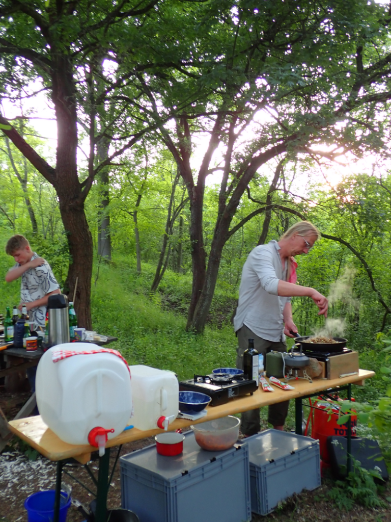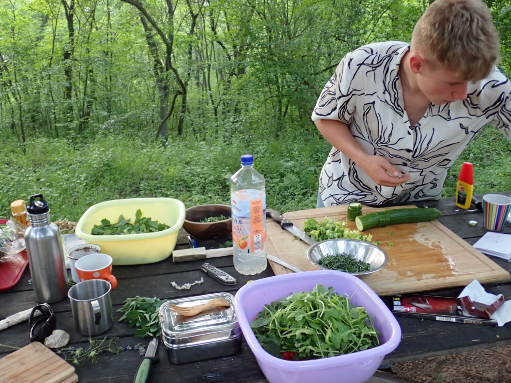Für das leibliche Wohl sorgten Mahlzeiten aus frischen mitgebrachten und gesammelten Lebensmitteln, immer draußen und ganz nah dran an der Natur.