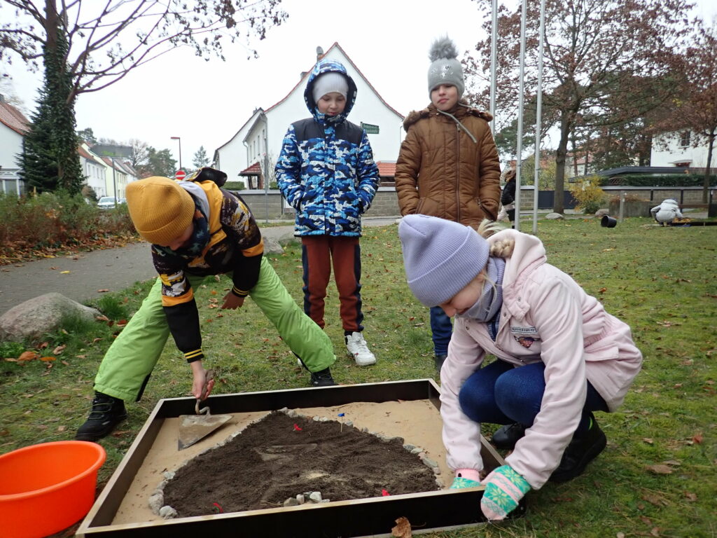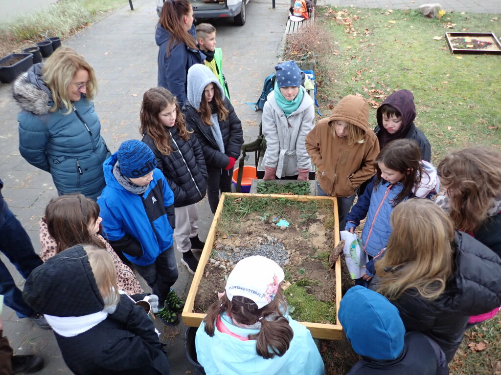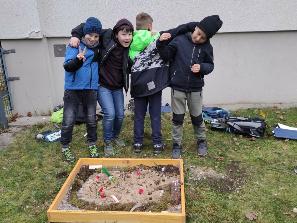 Heute beschäftigte sich die Klasse 4a der Karl-Sellheim-Schule wieder mit ihren Beeten. Dafür sammelten sie Ideen und gestalteten Modellkästen nach ihren eigenen Vorstellungen. In Vorbereitung hatten alle Kinder noch einmal Ideen gesammelt und Skizzen vorbereitet. Nun ging es darum, diese in Modellform umzusetzen. Die Kinder waren eifrig dabei und gestalteten trotz kaltem Wetter detailgenau ihre Mini-Gärten. Zum Abschluss kamen die Primarstufenleiterin Frau Segebarth und die Hausmeister der Schule dazu. Alle Gruppen präsentierten stolz ihre Ideen.