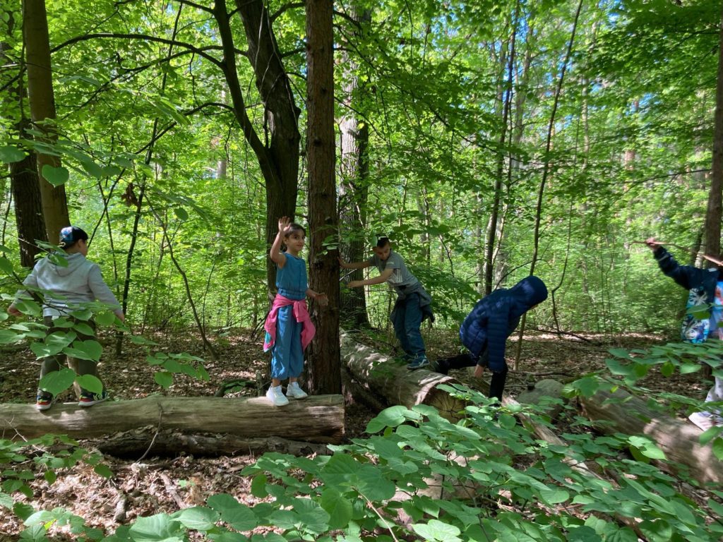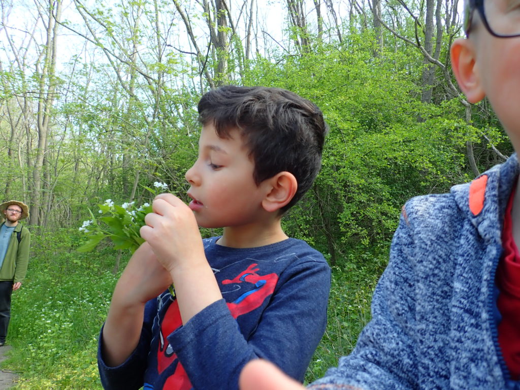 Nachdem die Kinder bei der letzten Veranstaltung an den Fliederblüten gekostet und so etwas über den Blütennektar gelernt hatten, ging es heute mit dem Thema weiter. Zuerst hielt der Gang zum Waldplatz wieder viele Überraschungen bereit. Und auch im Wald selbst wollten die Kinder erst wieder ihren Platz entdecken. Der Ort verliert seine Magie für