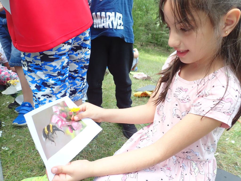 Auf dem Weg zum Waldplatz gab es wieder eine Menge zu entdecken. Die Kinder sahen einen Bläuling, eine Flockenblume und natürlich wieder viele Käfer und Bienen. Gabriela griff auf dem Waldplatz heute wieder das Thema Blütennektar auf. Mithilfe von Insektenpuzzeln lernten die Kinder, welche Tiere noch vom Blütennektar profitierten. Die Kinder wurden zunächst in 3