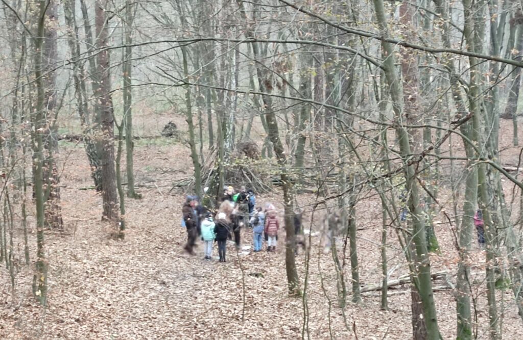 Zum Halbjahresabschluss der 4a trafen sich alle im Versuchsgarten der Stiftung WaldWelten. Vom Treffpunkt am Zoo ging es zunächst durch den Wald. Für den Weg bekamen die Kinder den Auftrag, Zunder und Brennholz zu sammeln. Nebenbei entdeckte die Gruppe Spuren von Reh, Fuchs und Biber. Im Versuchsgarten angekommen, spielte die Klasse ein Aufwärmspiel bevor sich